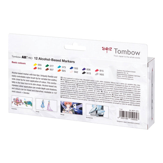 Tombow ABT PRO Dual Brush Pen 12 set, Basic Colours