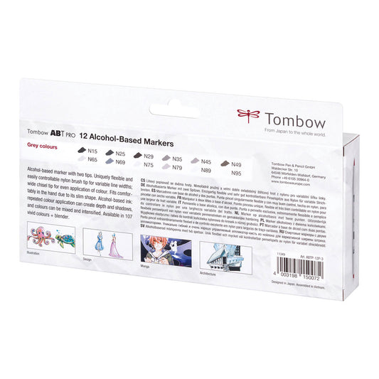 Tombow ABT PRO Dual Brush Pen 12 set, Grey Colours