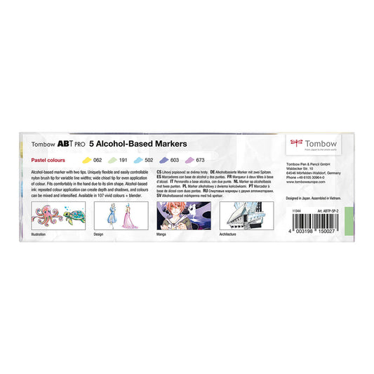 Tombow ABT PRO Dual Brush Pen 5 set, Pastel Colours
