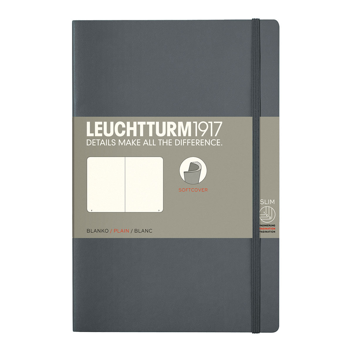 Leuchtturm1917 Notesbog B6+ Soft Cover, Blank, 123 blanke og nummererede sider på 80 g/m². Otte perforerede sider, nemme at rive ud. Bogmærke og elastiklukning. Trådindbundet bog, der kan ligge fladt. Mål: B6+ (125 x 190 mm).