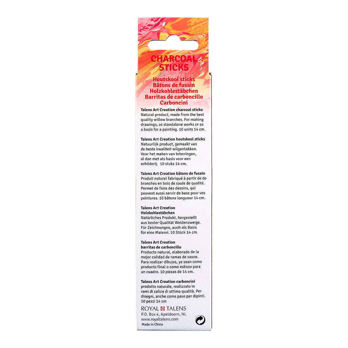 Talens Art Creation Charcoal Sticks 10 Set er et professionelt sæt af kulstifter, der er perfekt til skitsering, tegning og forberedelse af værker til maleri. Fremstillet af høj kvalitet piletræ, tilbyder disse kulstifter en rig og intens sort farve, der er ideel til både detaljeret og udtryksfuldt kunstværk. Sættet indeholder 10 kulstifter, hvilket giver et alsidigt udvalg til forskellige teknikker. Hver stift måler 14 cm i længden, hvilket gør dem egnede til både store og fine detaljerede arbejder. Den glatte påføring muliggør problemfri blending og lagdeling, ideel til kunstnere, der søger dybde og tekstur i deres arbejde. Uanset om du arbejder med kultegning, forbereder undertegninger til et maleri, eller blot skitserer, giver Talens Art Creation Charcoal Sticks fremragende kontrol og konsistens. Deres evne til at skabe bløde, rige linjer og deres lette at viske-egenskaber gør dem til et essentielt værktøj for kunstnere, der arbejder både i traditionel og moderne kunststil.