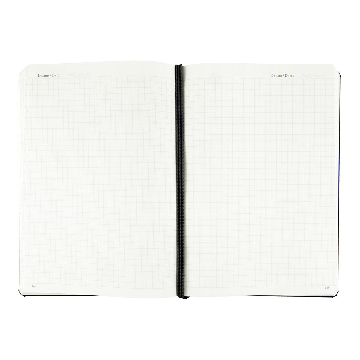 Leuchtturm1917 Medium Notebook A5, 249 squared and numbered 80 g/m² pages. Eight perforated easy detachable sheets. Page marker and an elastic enclosure band. Thread-bound book opens flat. Dimensions: A5 (145 x 210 mm).