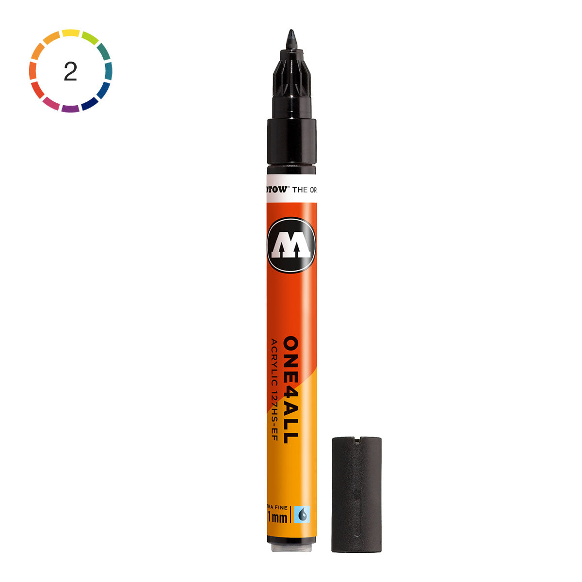The acrylic-based ONE4ALL 127HS-EF with the exchangeable 1 mm Crossover-Tip for finest detals + outlines. Available in black and white.
