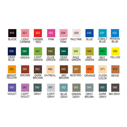 The ZIG Clean Color Real Brush markers have a smooth nylon bristle tip and are filled with water-based dye ink. Perfect markers for illustrations, sketches, brush lettering and bullet journals. In this medium sized set you get 36 different colors.These pens also work super well for adding tiny details. Tip! Use the ZIG Clean Color Real Brush on to top of Stylefile Markers, to create seamless shadows! Scroll down or look in the image gallery to see exactly which colours that are included in this set. We also sell Zig Kuretake Clean Color Real Brush as single pens.