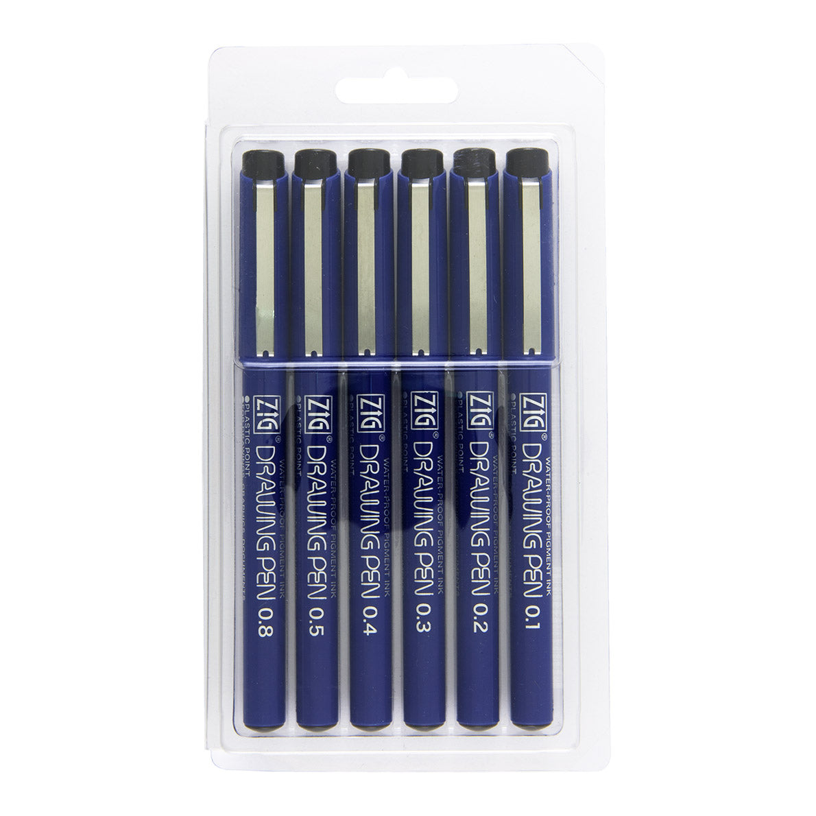 In this set of fineliner pens from ZIG Kuretake you will find a six different sizes: 01, 02, 03, 04, 05 and 08. Filled with black water-proof pigment ink, perfect for drawings, graphics and documents.