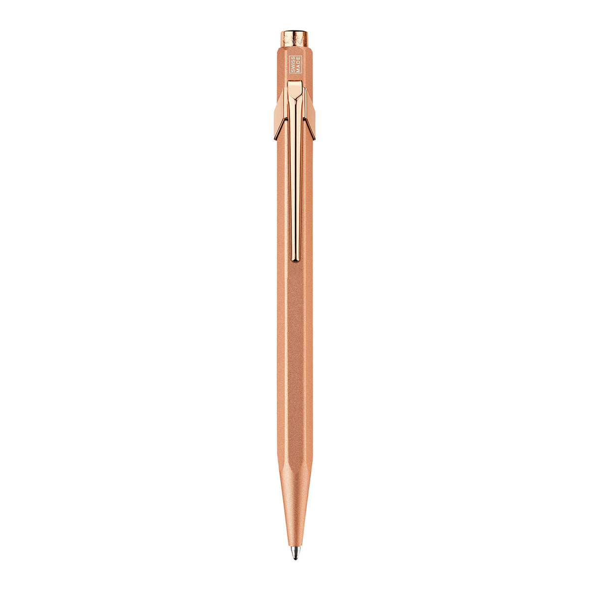 Caran d’Ache 849 Brut Rose kulspetspenna är en stilfull och pålitlig följeslagare för vardagligt skrivande. Med ett sexkantigt aluminiumhölje och en elegant elektrostatisk pulverlackad finish kombinerar denna ikoniska schweiziska penna elegans med funktionalitet. Den lätta konstruktionen ger bekväm användning, medan den flexibla klämman och tryckknappen gör den enkel att bära och använda. Pennan levereras med en Caran d’Ache M Blue Goliath-bläckpatron och är kompatibel med alla standard Goliath-patroner, vilket ger långvarig prestanda och mångsidighet.