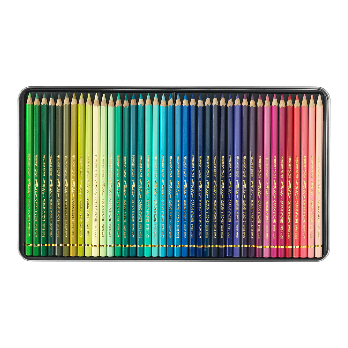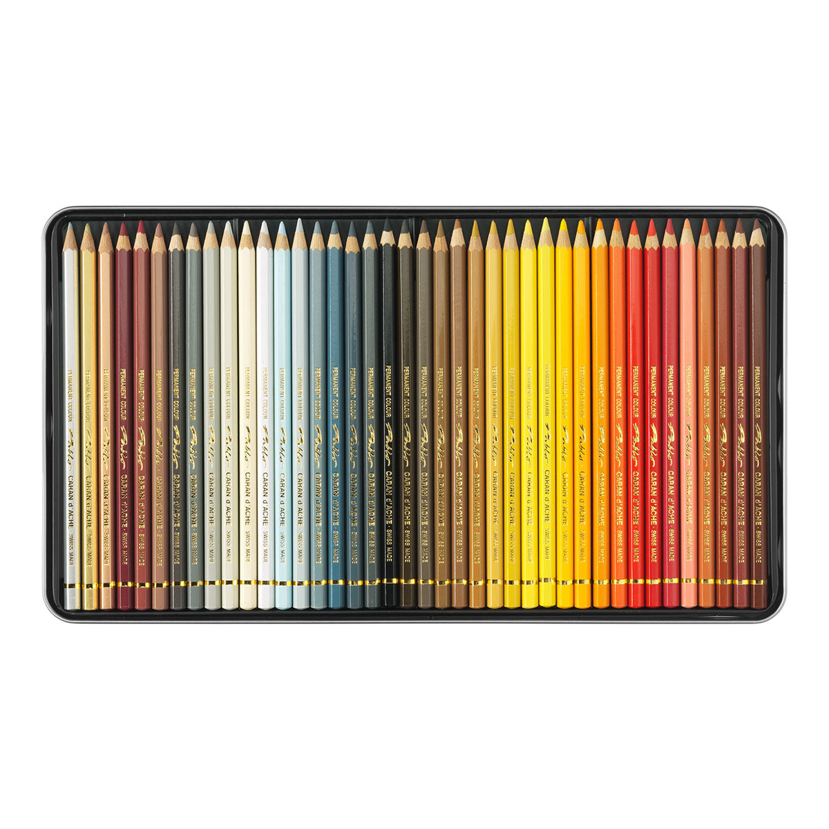80-pack med Caran d’Ache Pablo färgpennor av högsta kvalité. Pennorna har ett 3,8 mm tjockt färgstift som har perfekt pigment för att både fylla ut större områden eller till mjuka färgövergångar och skuggor. Caran d’Ache Pablo är vattenfasta och ger ett professionellt resultat utan färgdamm. Pennorna som är tillverkade i miljövänligt FSC-certifierat cederträ levereras i en fin metallask. För att se vilka färger som ingår i detta set så kolla på bilderna eller scrolla längre ner på denna sida. Det är alltid billigast att köpa pennorna i set som detta men om du vill komplettera ditt pack med andra färger så säljer vi också Caran d'Ache Pablo färgpennor styckvis.
