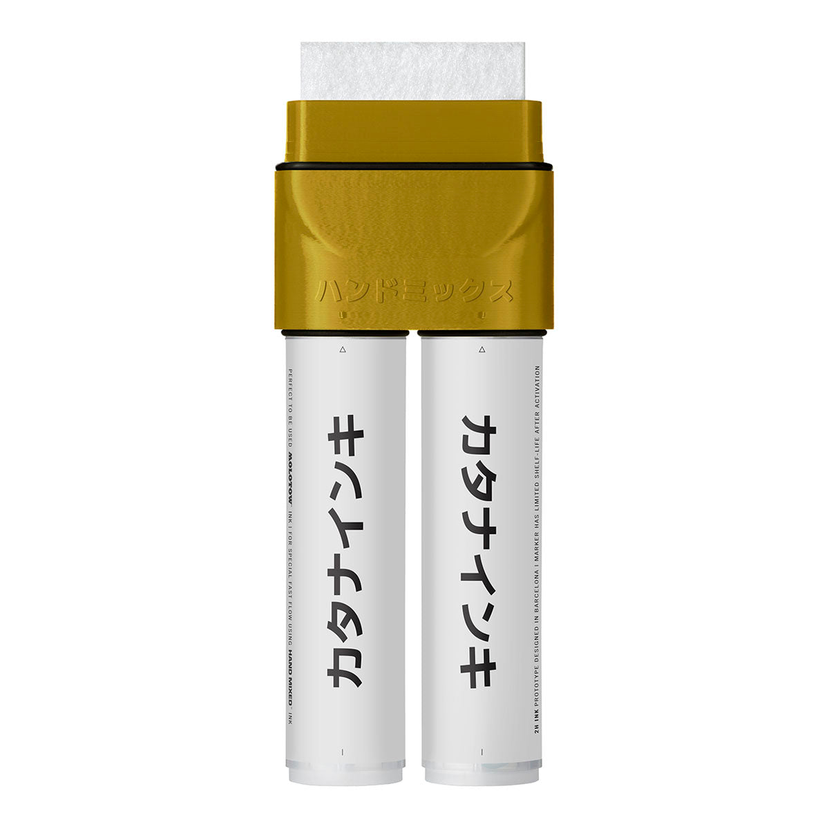 Limited edition utgåva av HAND MIXED tvåfärgade pumpmarkers. Denna limiterad utgåva är en hyllning till Hattori Hanzo från Quentin Tarantinos film Kill Bill. Pennan levereras tom och kan fyllas på med två olika färger.
