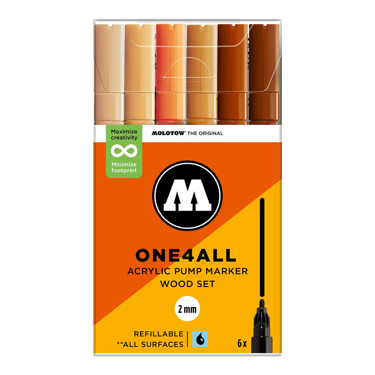 Påfyllningsbara akrylpennor med en 2 mm utbytbar udd. Komplettera gärna ditt pack genom att köpa enstaka Molotow One4All 127HS Markers.