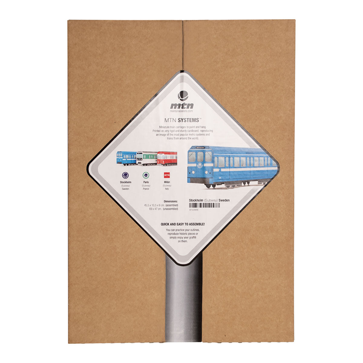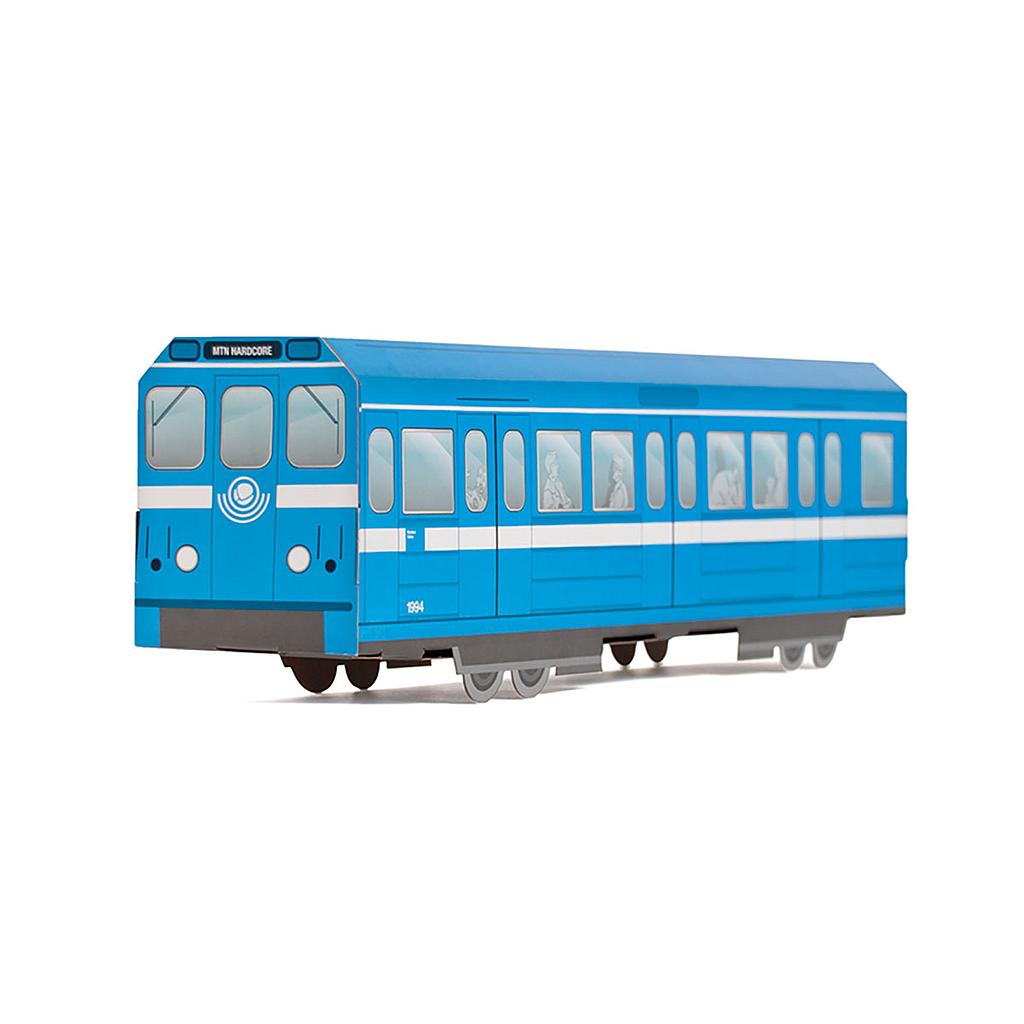 Replika av Stockholms tunnelbana i kartong som du kan kan måla på och sen vika ihop till en 3D-modell. Du kan måla eller teckna med i stort sett alla typ av pennor eftersom tåget är tillverkat i kartong men vi rekommenderar vattenbaserad akrylpennor. Modellen blir cirka 43 cm x 10 cm x 9 cm när den är ihopvikt.