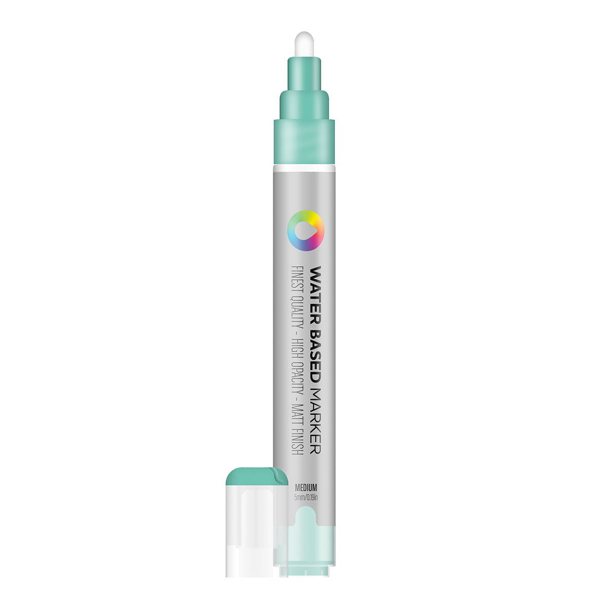 8-pack med MTN Water Based Markers Medium 5 mm i blandade färger. Pennorna har en 5 mm tjock rund fiberudd och är fyllda med heltäckande akrylfärg. Pennorna funkar på de flesta underlag och är väldigt populära till tavelduk, sten, trä, papper och kartong. Vi säljer även MTN Water Based Markers Medium 5 mm styckvis.
