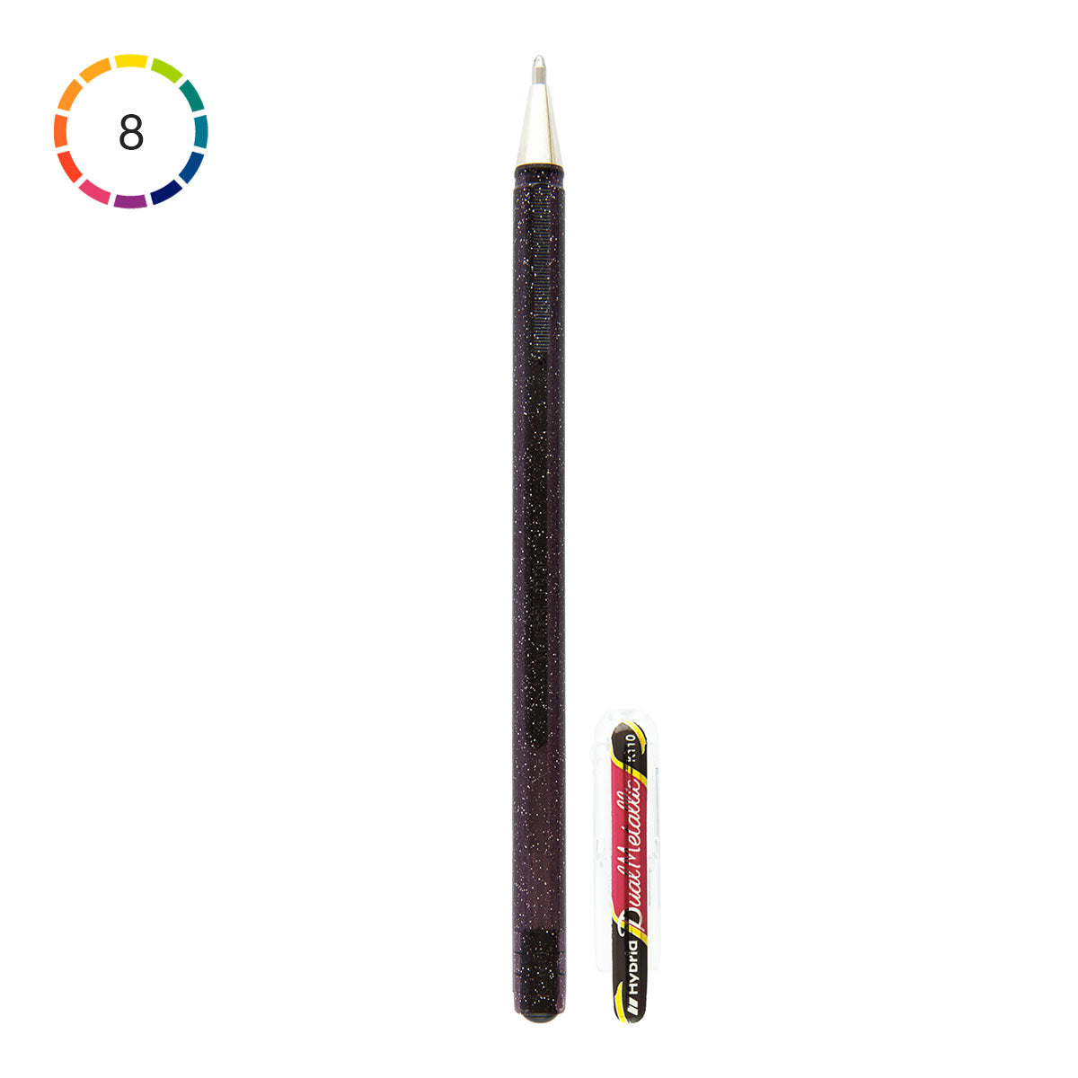 Pentel Hybrid K110 Dual Metallic Gel Rollerpenna använder ett mjukt, pigmenterat färgbläck som ändrar utseende beroende på papperets färg, vilket ger ett unikt utseende varje gång.