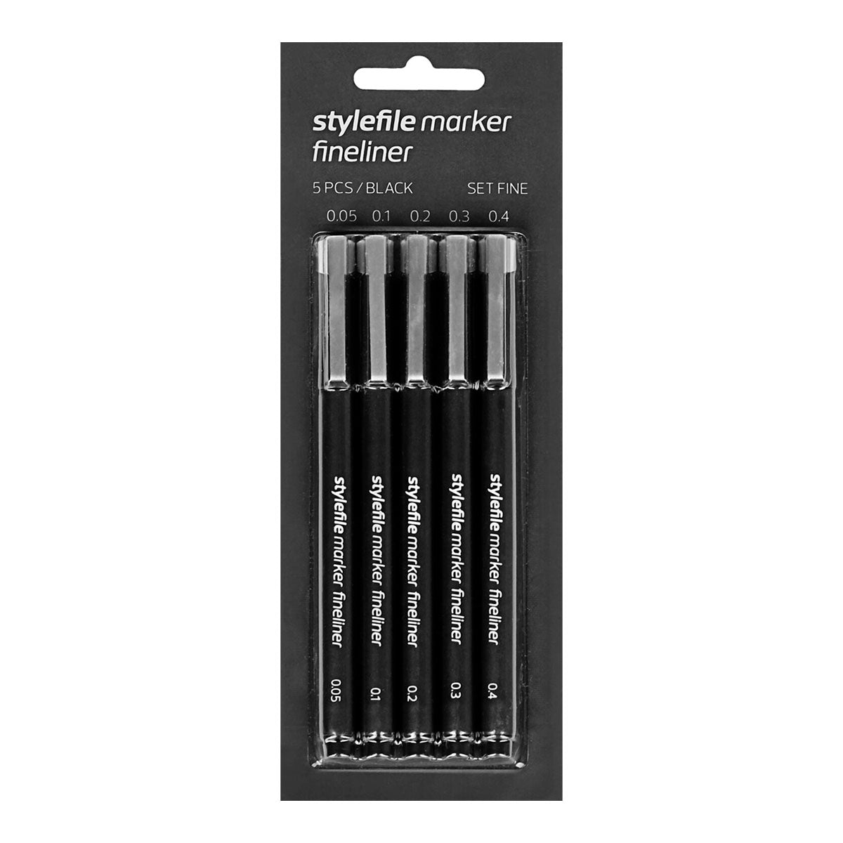 5-pack med fem stycken utvalda Stylefile Fineliners. Pennorna är fyllda med svart pigmentbläck som torkar snabbt och kan kombineras med både vatten- och alkoholbaserade pennor. I detta set ingår storlekarna 0.05, 0.1, 0.2, 0.3 och 0.4. Se hela vårt sortiment från Stylefile här.