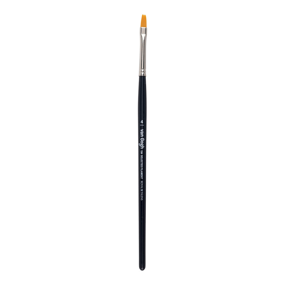 Handtillverkad akvarellpensel med syntetiska guldborst som suger upp bra med vatten och färg vilket är a och o för en bra akvarellpensel. Penselns borst har en platt form i storlek 4 (4.3 mm). Penseln har ett runt lackerat träskaft och den totala längden inklusive borst är 174 mm. Van Goghs akvarellpenslar finns i flera olika storlekar och utföranden, du hittar alla våra penslar här.